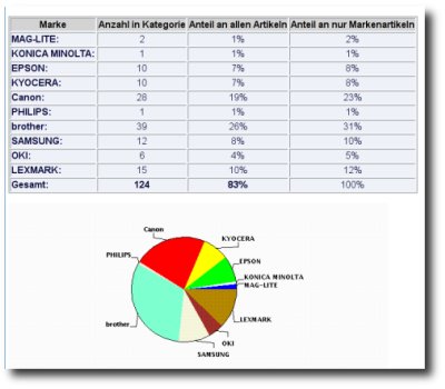 Mit Hilfe von der flexiblen Markenanalyse können Sie für jeden Mitbewerber und detailiert für jede Produktkategorie gezielte Auswertungen abrufen.