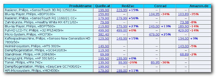 Stellen Sie Ihre Preise direkt der Konkurrenz gegenüber.