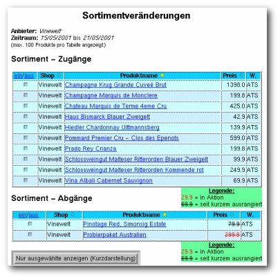 - weitere Selektion der Produkte (Detailbeschreibung)